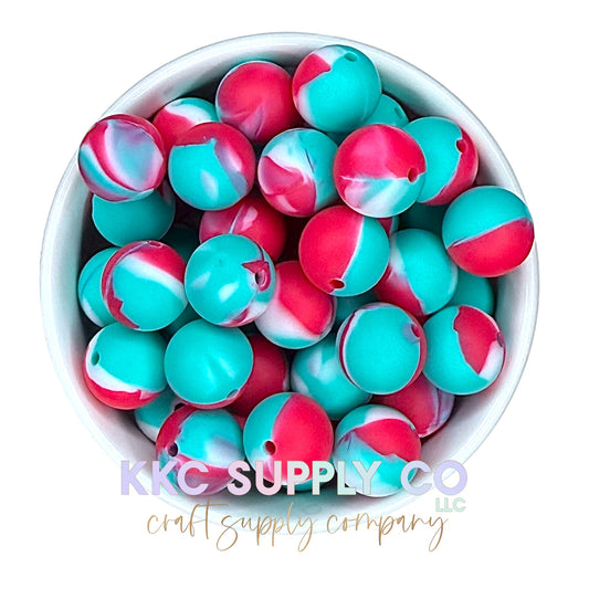 SP209-Berry Marble Printed Silicone Bead 15mm