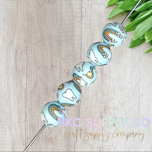 SP206-Tooth Fairy Printed Silicone Bead 15mm