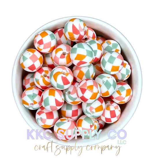 SP221-Checker Coquette Bow Printed Silicone Beads - Custom
