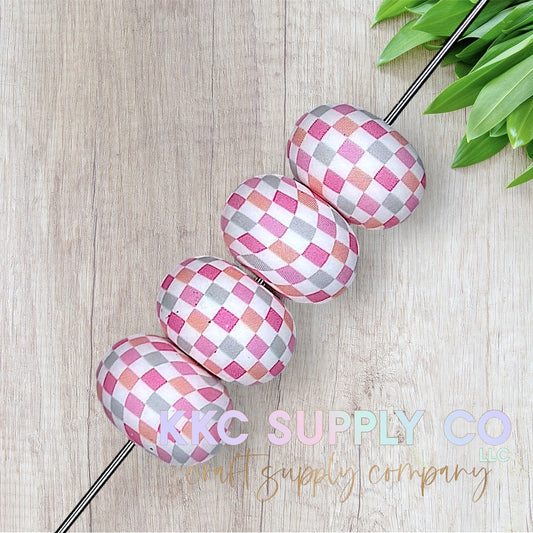 SP190-Pastel Easter Plaid Printed Silicone Abacus Bead 23mm