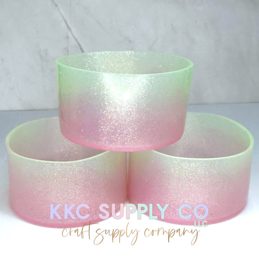 SGL69-Pink Checker Liquid Glitter Silicone Bead 15mm