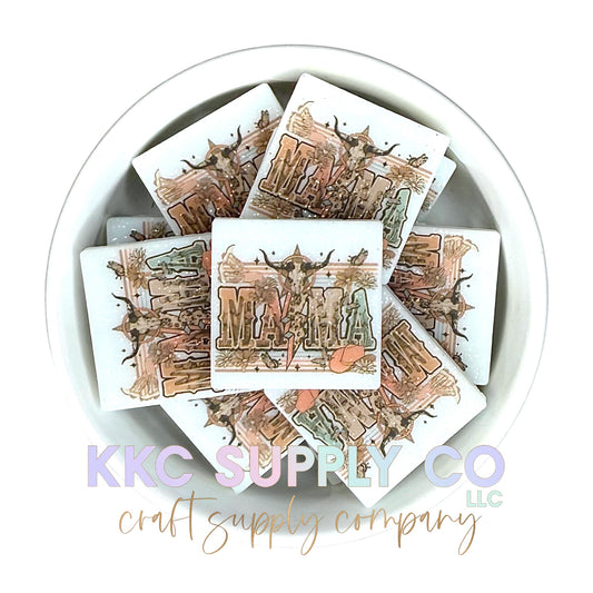 Western Mama Glitter Square Printed Silicone Focal Bead-KKCSC Custom