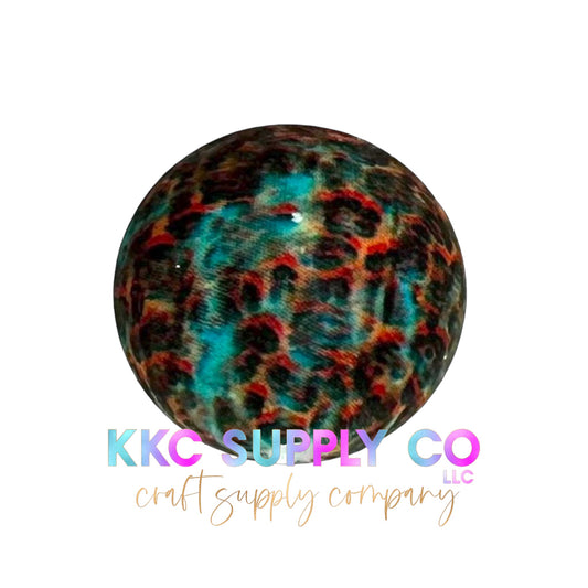 SP88-Teal and Leopard Printed Silicone Bead 15mm