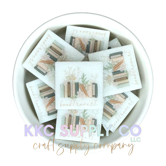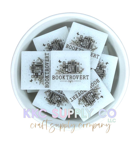 Booktrovert Glitter Square Printed Silicone Focal Bead-KKCSC Custom