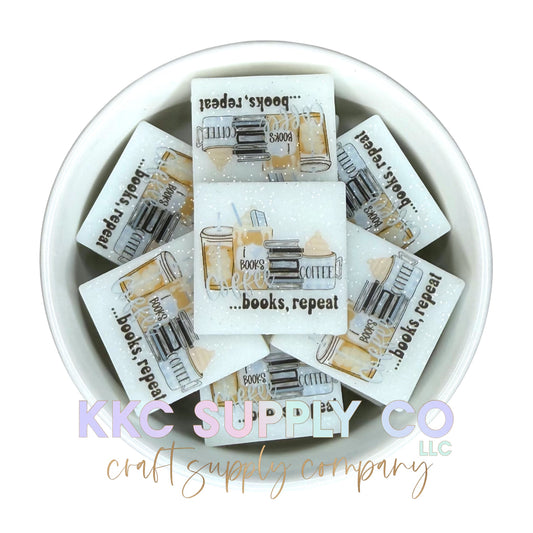 Coffee, Books, Repeat Glitter Square Printed Silicone Focal Bead-KKCSC Custom