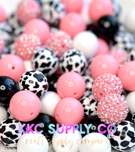 Pink and Black/White Cow Print Bubblegum Bead Mix 20mm