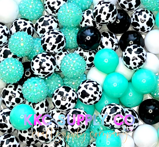 Teal and Black/White Cow Print Bubblegum Bead Mix 20mm *Best Seller*