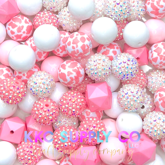 Pink Cow Print and White Bubblegum Bead Mix 20mm