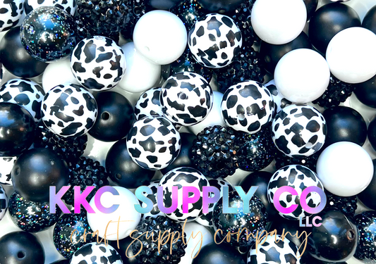 Black & White Cow Print Bubblegum Bead Mix 20mm