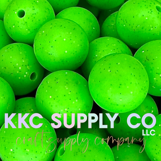 SG23-Neon Glitter Green Solid Silicone Bead 15mm