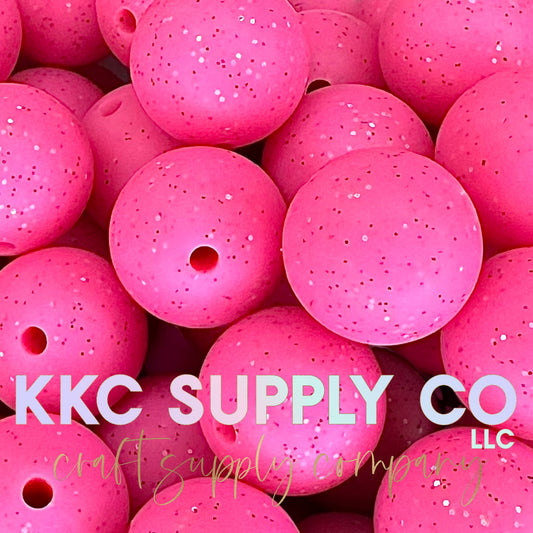 SG21-Neon Glitter Pink Solid Silicone Bead 15mm
