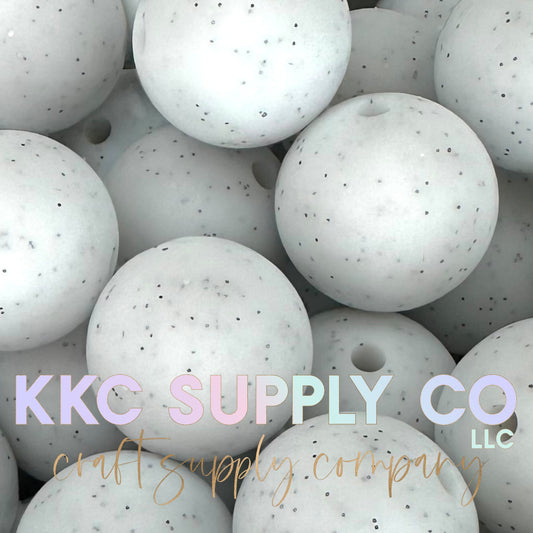 SG17-White with Black and Silver Glitter Solid Silicone Bead 15mm