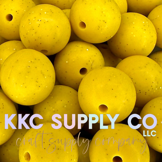 SG25-Neon Glitter Yellow Solid Silicone Bead 15mm