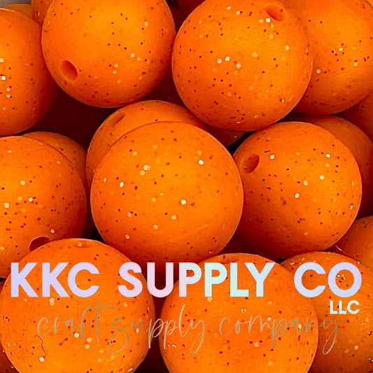 SG24-Neon Glitter Orange Solid Silicone Bead 15mm