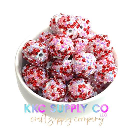 Pink, Red and White Confetti AB Rhinestone Bubblegum Bead 20mm