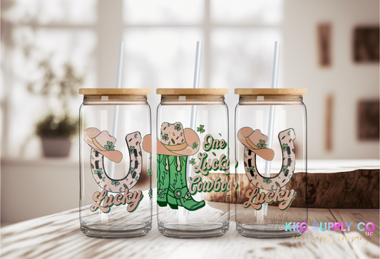UV16335-One Lucky Cowboy 16oz UV DTF Wrap or Decal Sheet