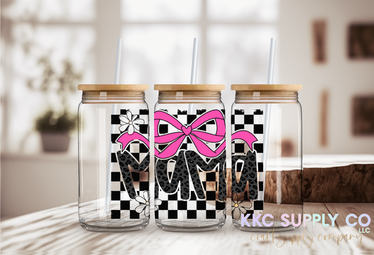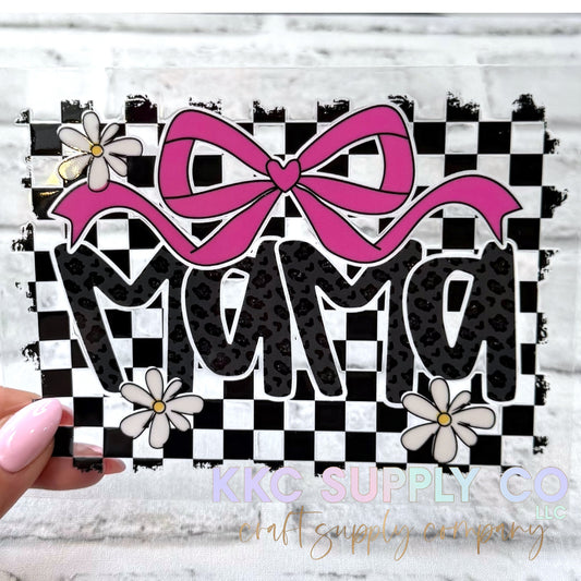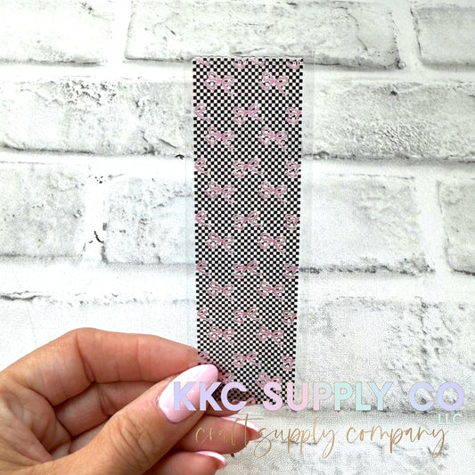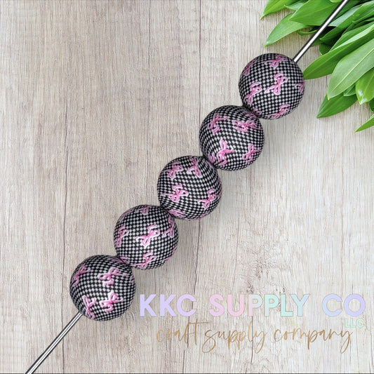 SGL69-Pink Checker Liquid Glitter Large Bow Silicone Focal Bead