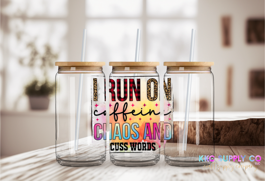 UV16317-I Run On Caffeine, Chaos and Cuss Words 16oz UV DTF Decal