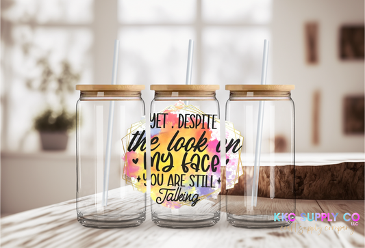 UV16296-Yet Despite The Look On My Face You’re Still Talking 16oz UV DTF Decal