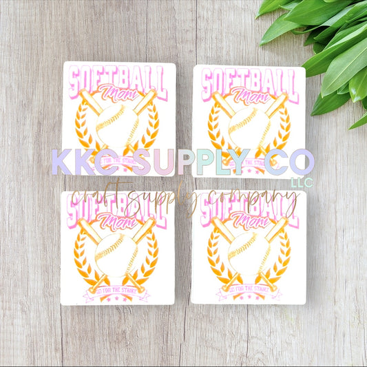 Pink Soft Ball Mom Printed Square Silicone Focal Bead