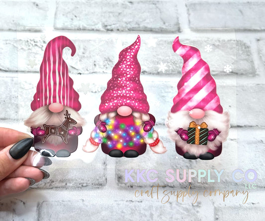 UV16300-Pink Christmas Gnomes UV DTF Large Decal