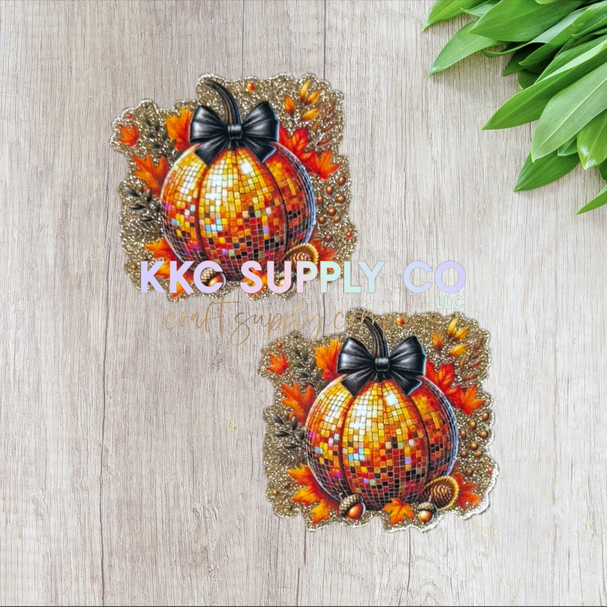 AT293-Disco Bow Pumpkin and Leaves-Acrylic Flatback