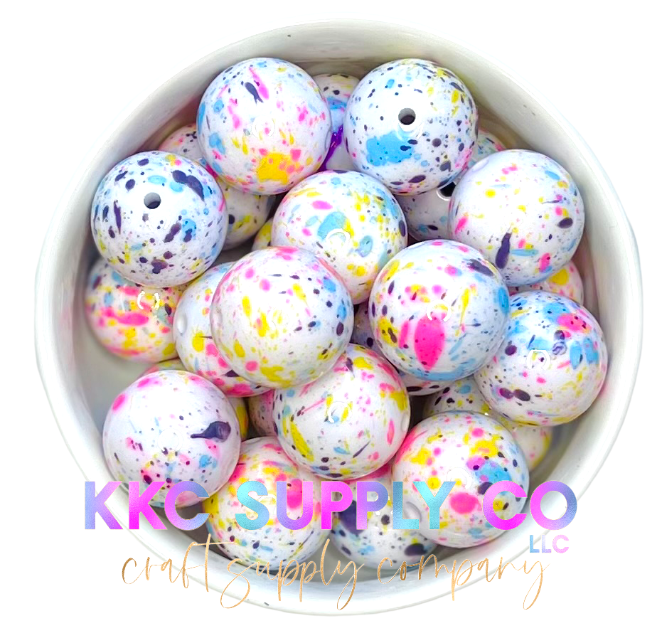 Rainbow Paint Splatter Bubblegum Beads 20mm