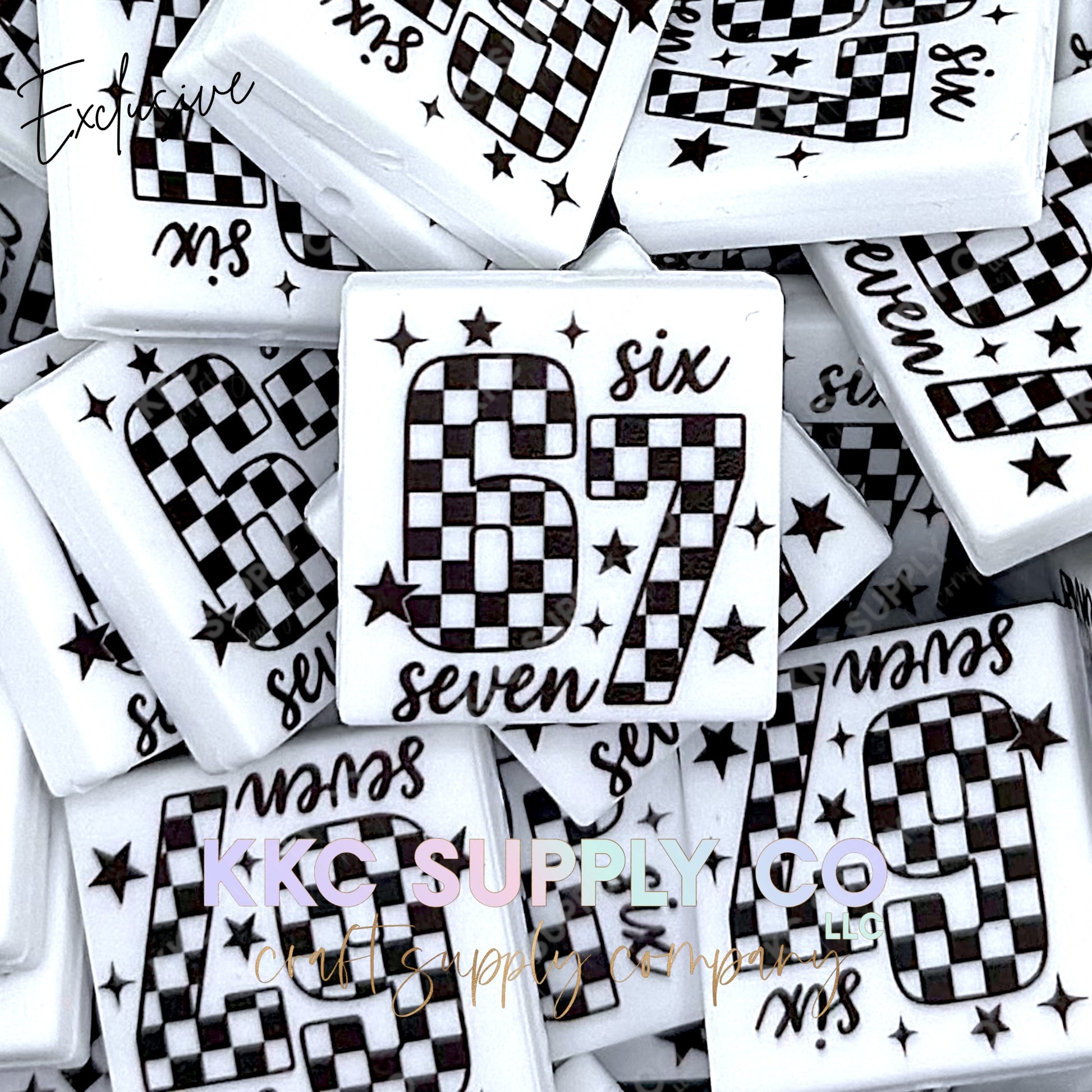 *Exclusive* Checker 6 7 Printed Silicone Focal Bead