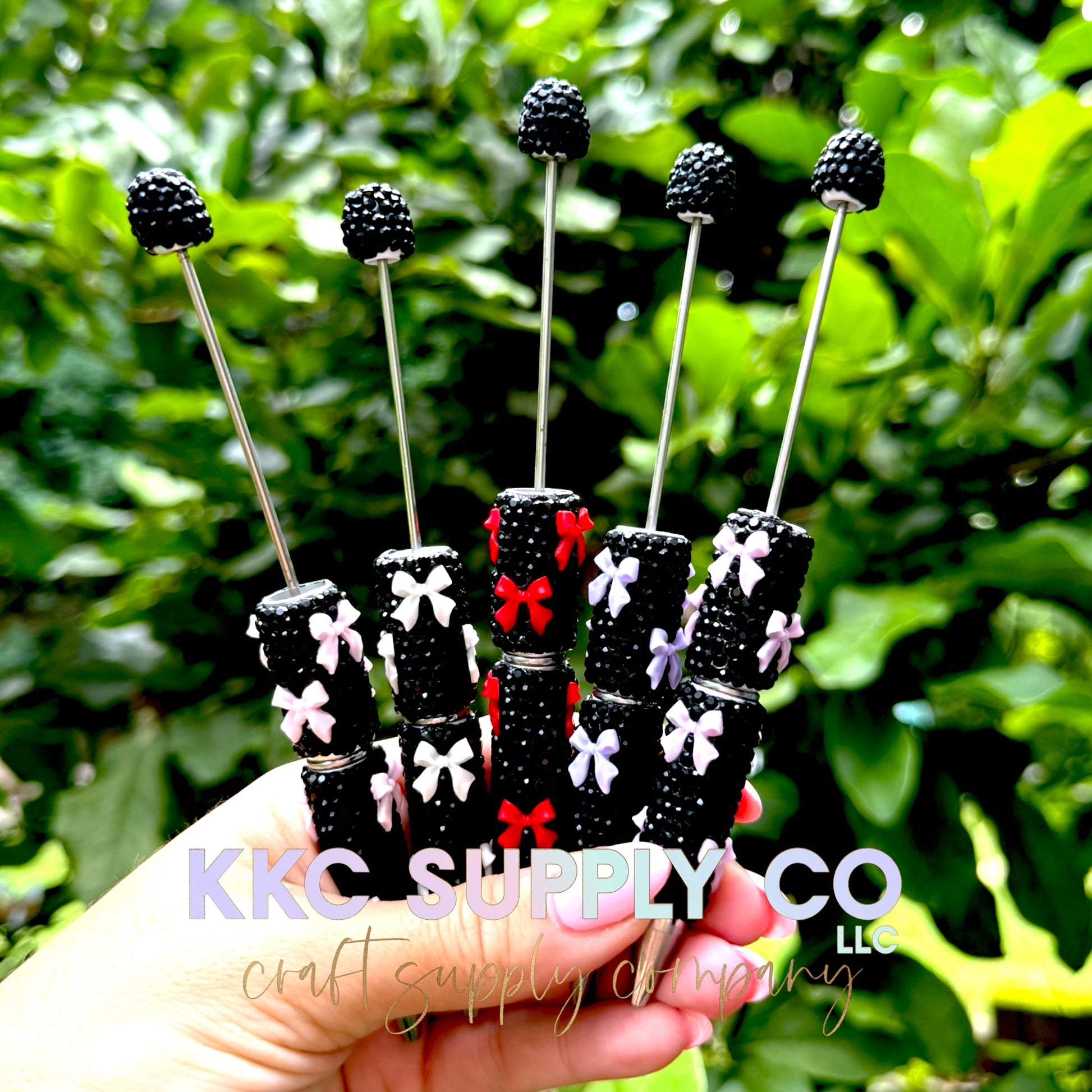 Rhinestone Beadable Pen With Bow Charms-Black
