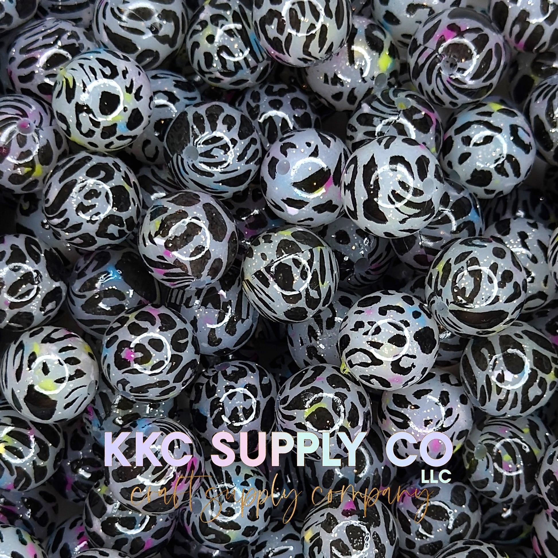 SGL60-White with Neon Confetti Leopard Liquid Glitter Silicone Beads