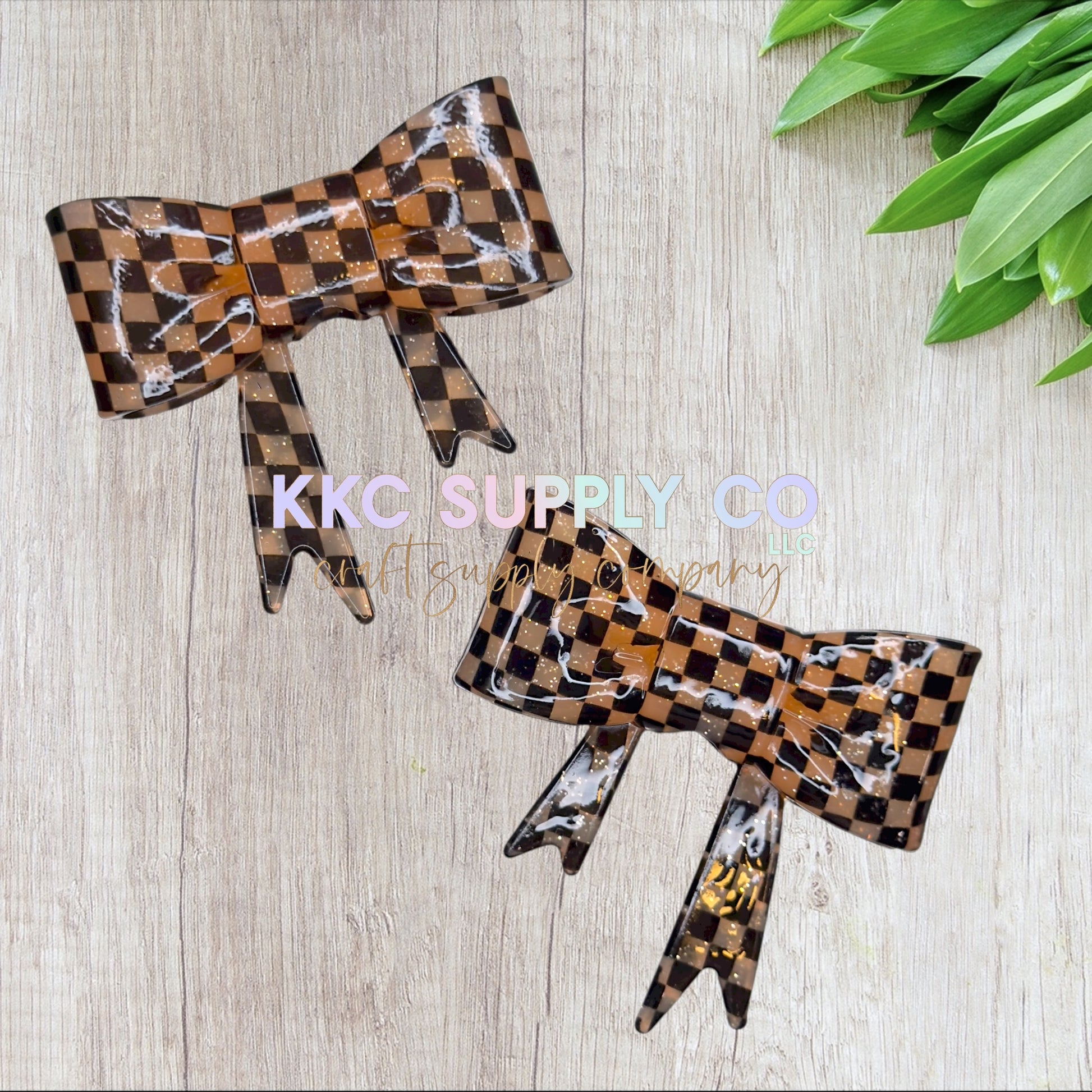 SGL63-Orange Liquid Glitter Checker Large Bow Silicone Focal Bead