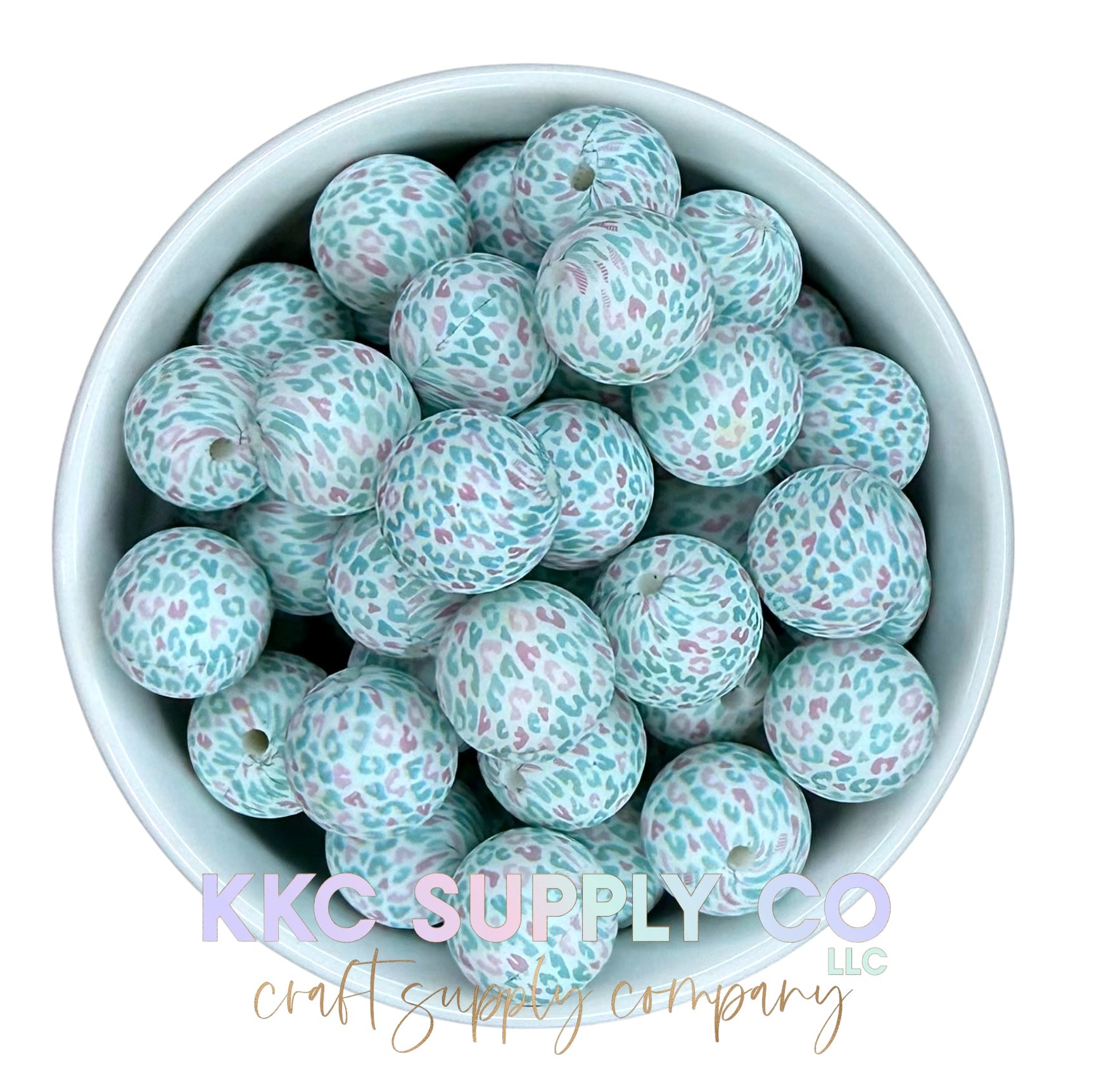 SP212-Minty Lilac Leopard Printed Silicone Bead 15mm