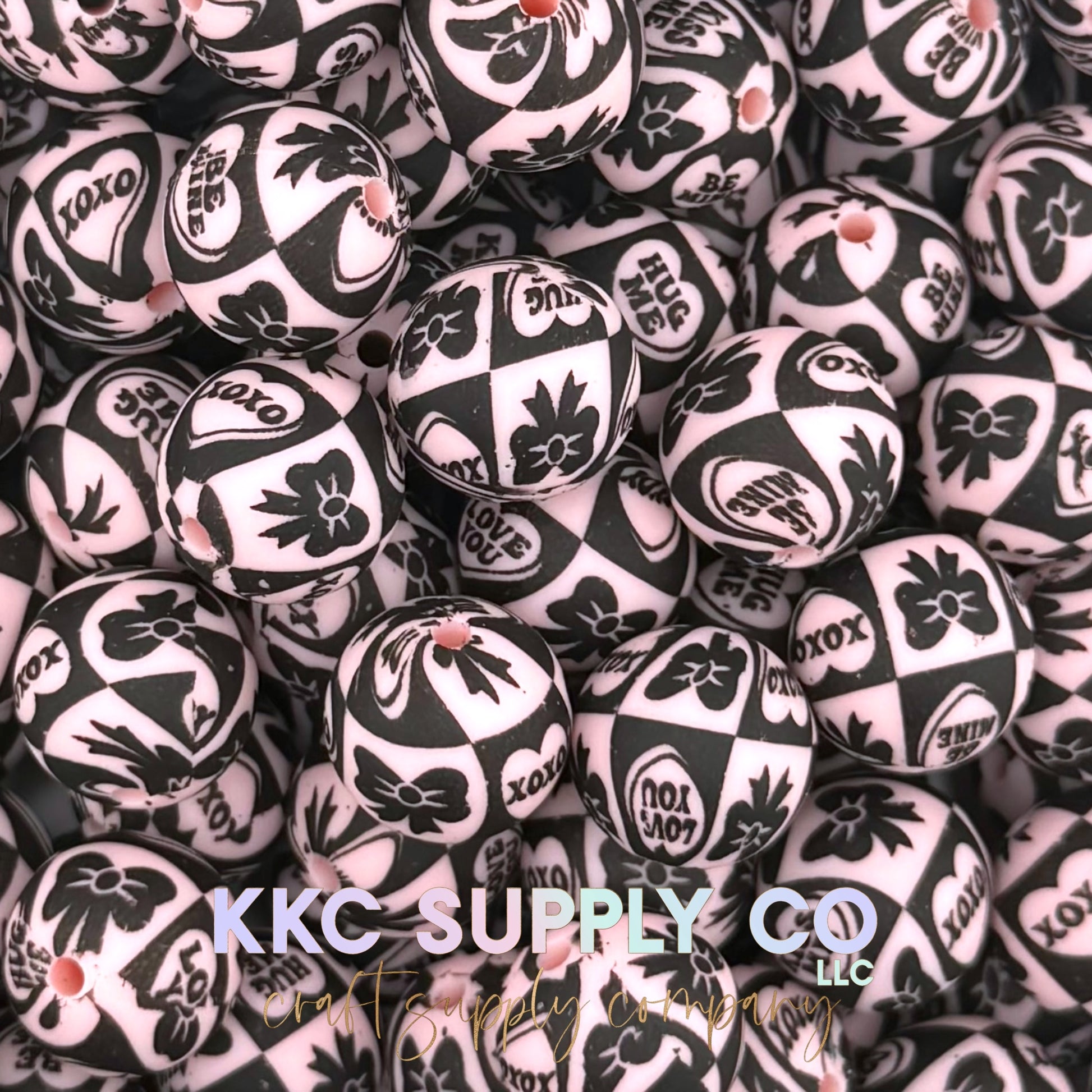 SP277-Pale Pink and Black XOXO Printed Bead 15mm