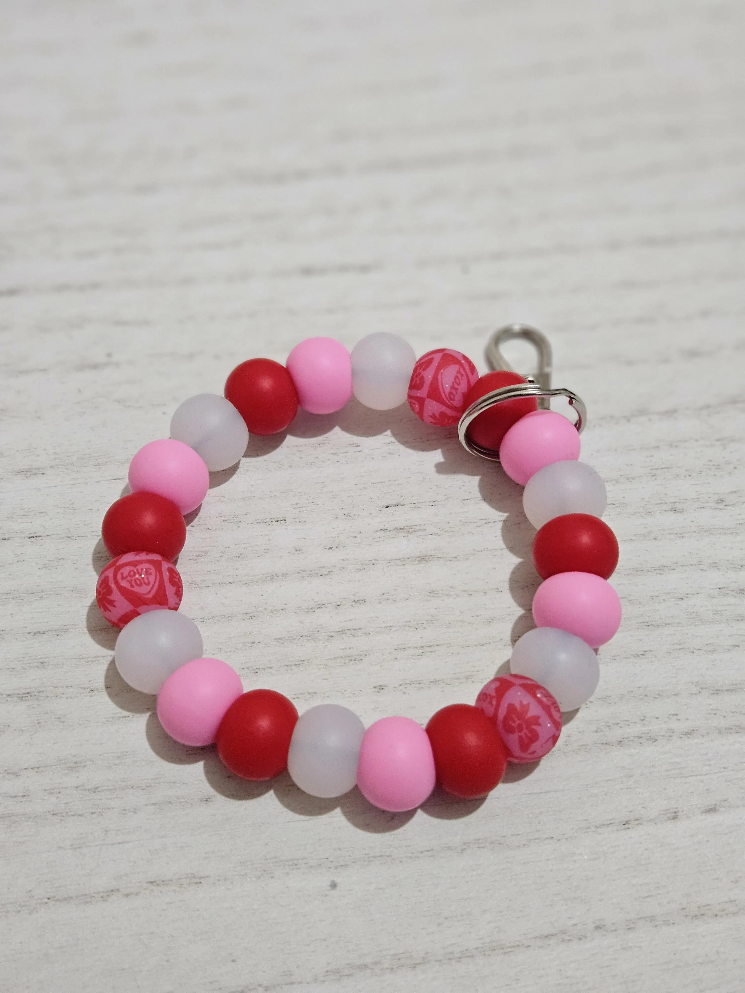 SP279-Red and Pink Glitter XOXO Printed Bead 15mm