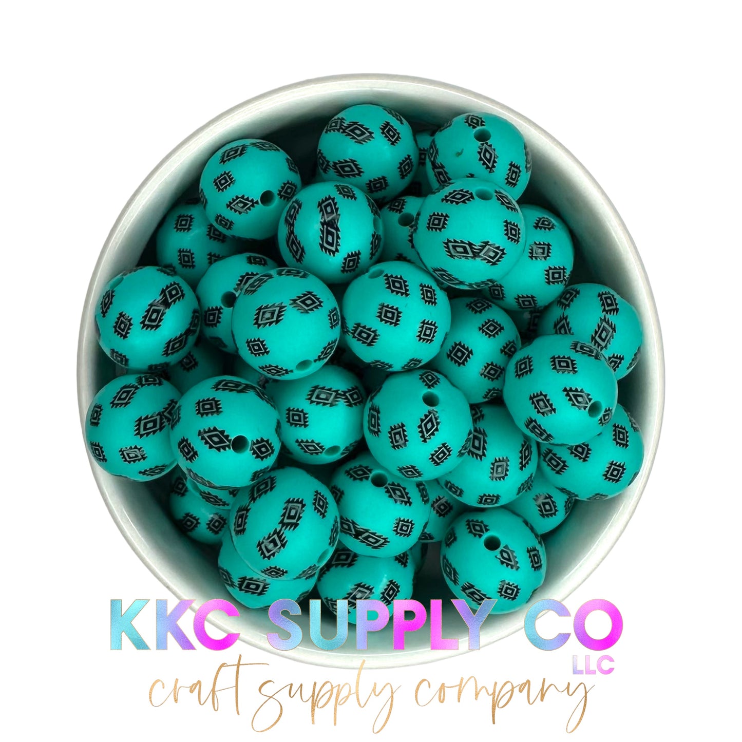 SP78-Teal & Black Aztec 15mm Silicone Beads