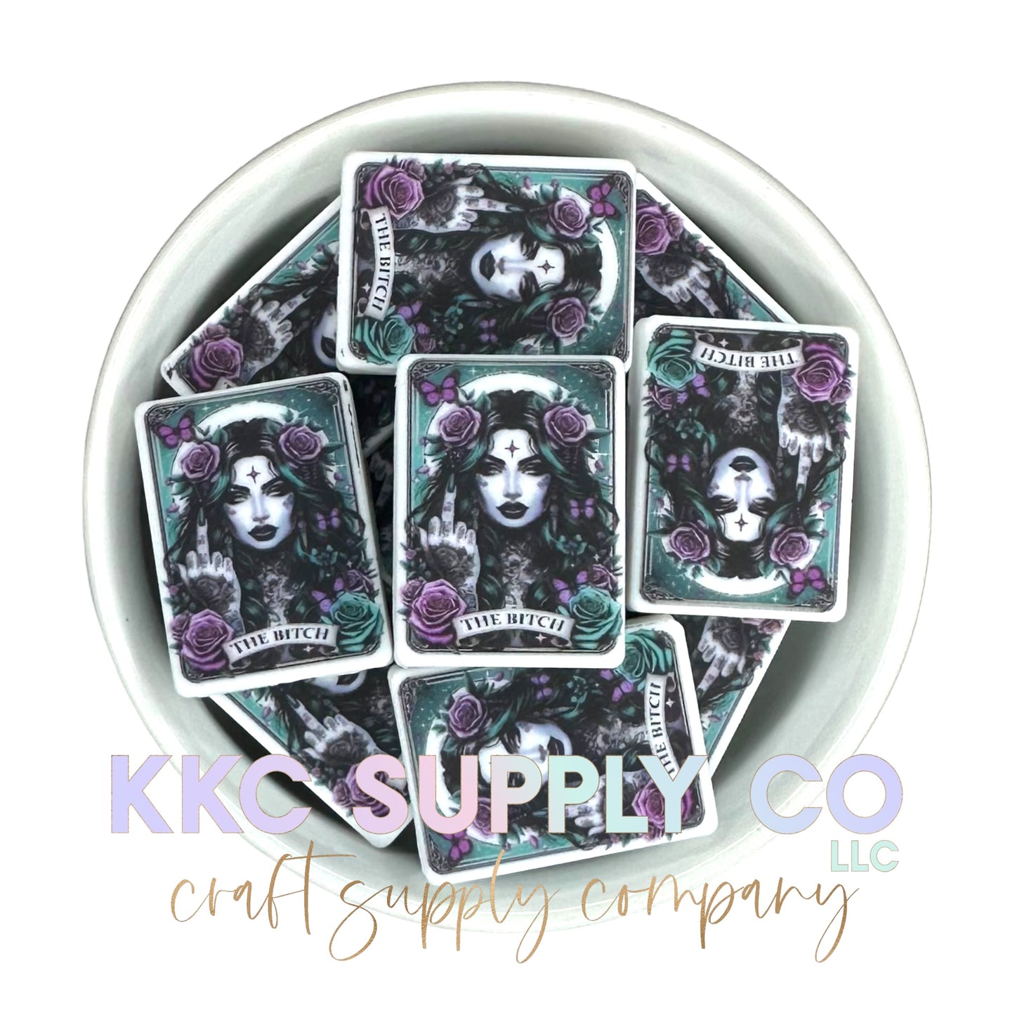 “The B!tch” Tarot Card Rectangle Silicone Focal Bead