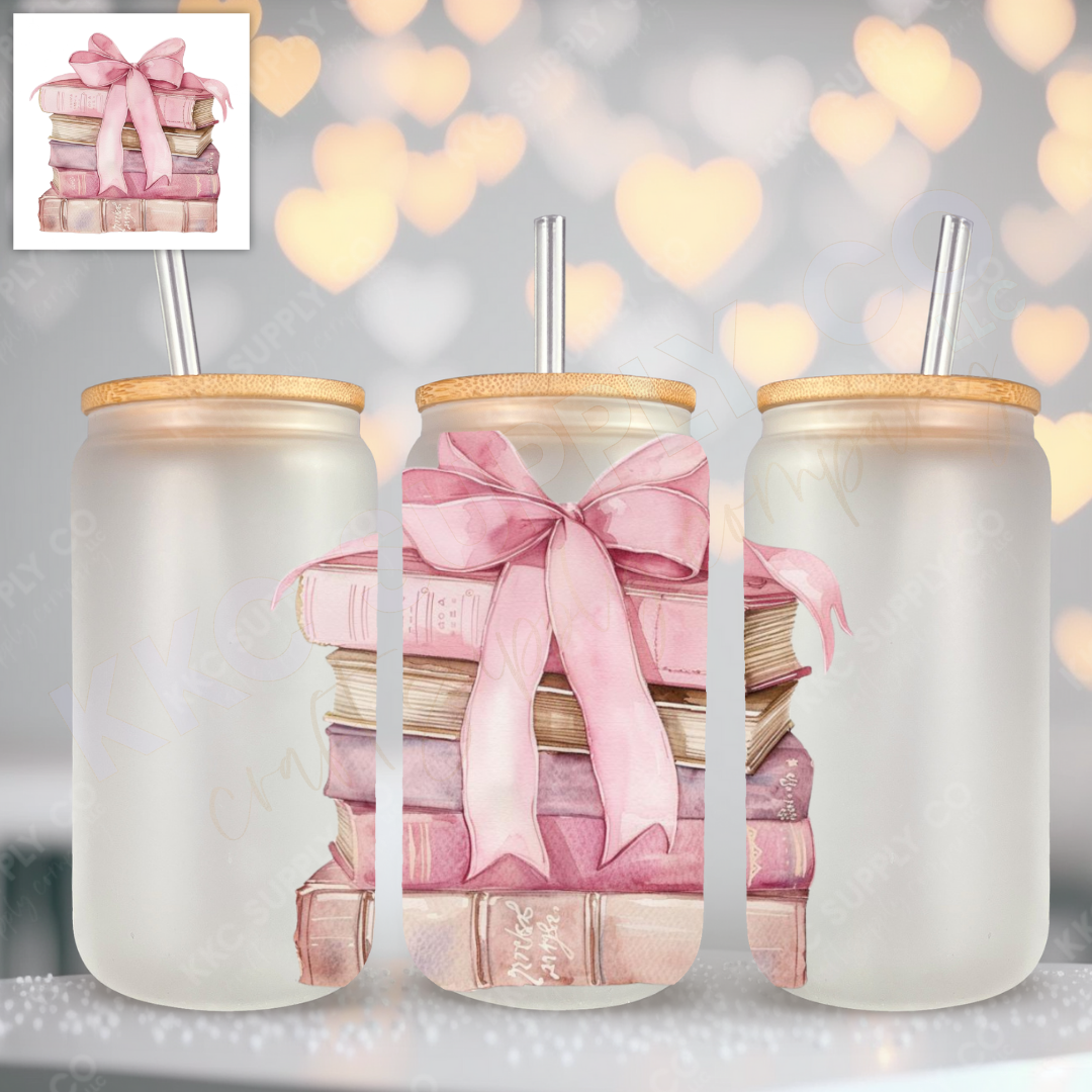 UV16528-Coquette Bow Book Stack UV DTF Decal