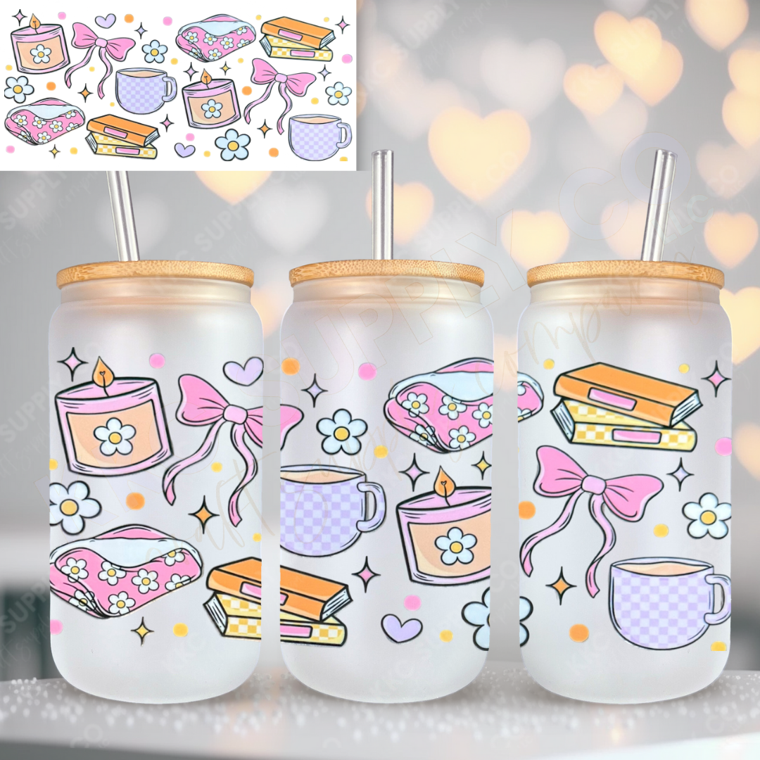 UV16747-Cozy Book Necessities 16oz UV DTF Wrap